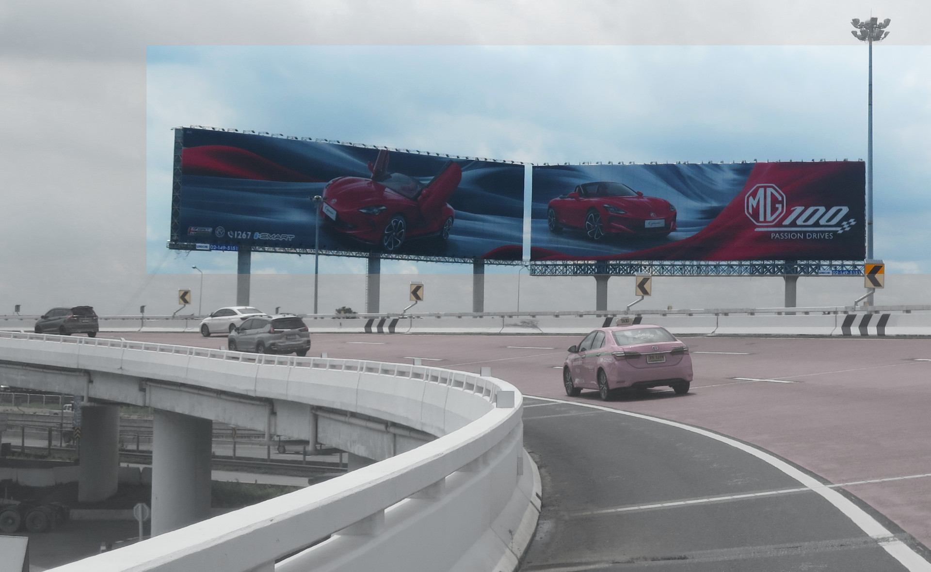 ป้ายโฆษณาบริเวณ ขาออกจากสนามบิน - มอเตอร์เวย์ - พระราม 9   ประเภท: โครงเสากลม ขนาด: สูง 17 เมตร x กว้าง 70 เมตร ไฟส่องป้าย: จำนวน 20 ดวง    ...